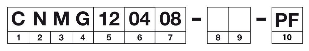 数控车刀片的命名主要遵循国家标准 GB/T 2076-2021《切削刀具用可转位刀片 型号表示规则》。该标准采用十个号位的规则来定义一款刀片,就像它的“身份证号”