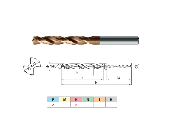 1534GD03C系列 是 GD系列新一代通用加工整体硬质合金麻花钻,属于具备内冷功能的3倍径整体硬质合金钻头,适用于钢、铸铁等多种材料的通用加工。