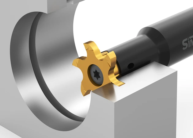 通用槽铣:加工直槽、环形槽等,例如宽度为2 mm的刀片,最小加工孔径为27.7 mm,最大切深为6.5 mm。